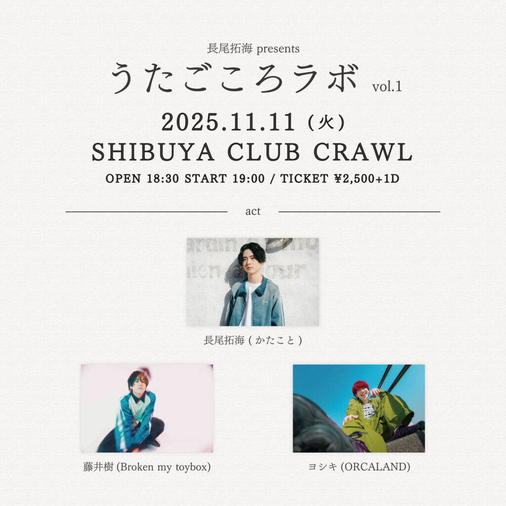 長尾拓海(かたこと) / 藤井樹(Broken my toybox) / ヨシキ(ORCALAND)